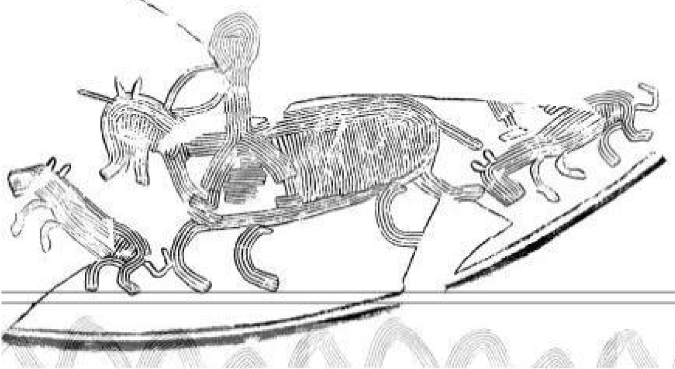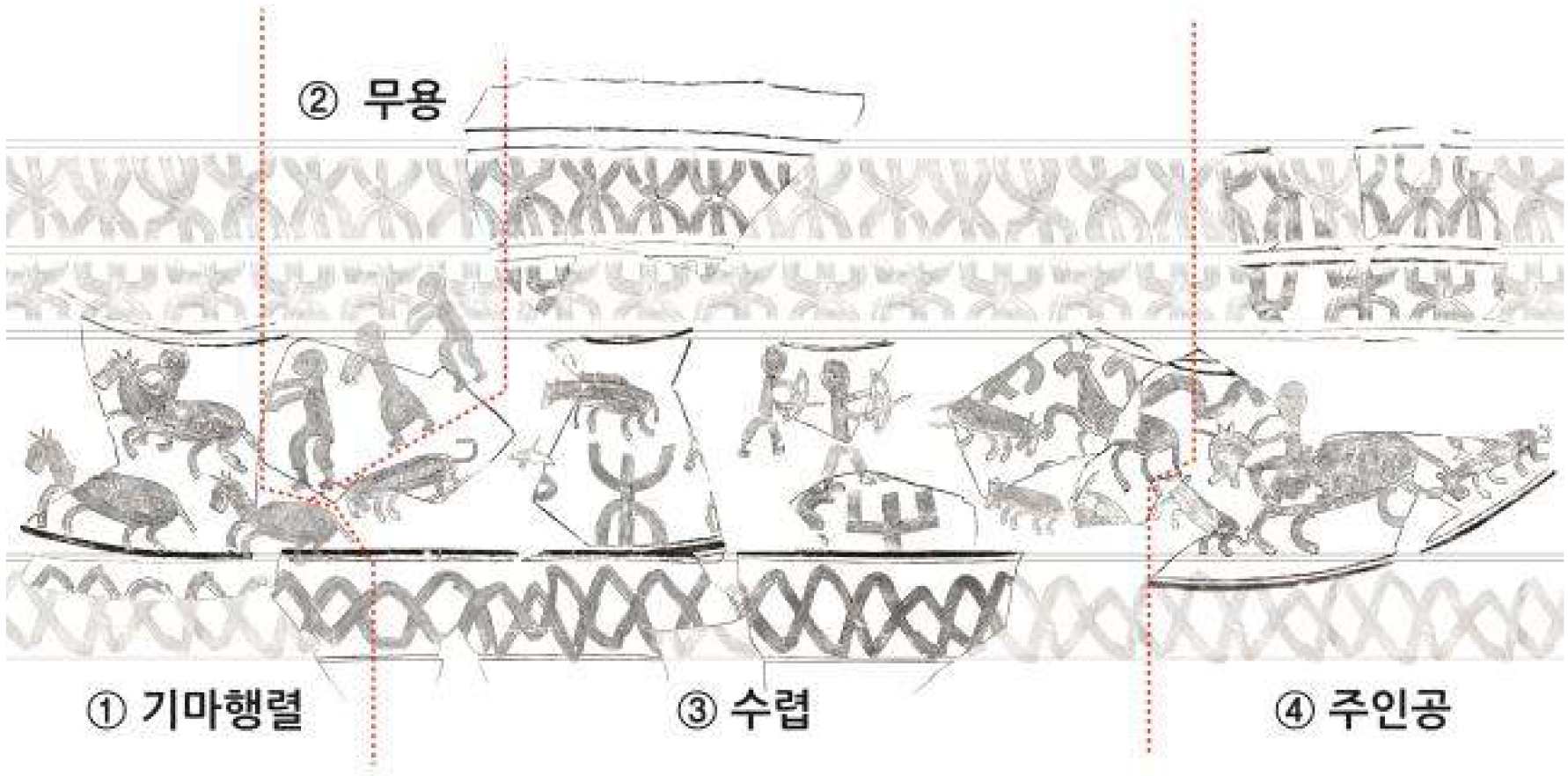 문양의 전체 구성으로 보아 행렬도를 묘사한 것으로 추정되며, 출토 정황상 제사용 토기로 제작되어 사용된 것으로 보인다.