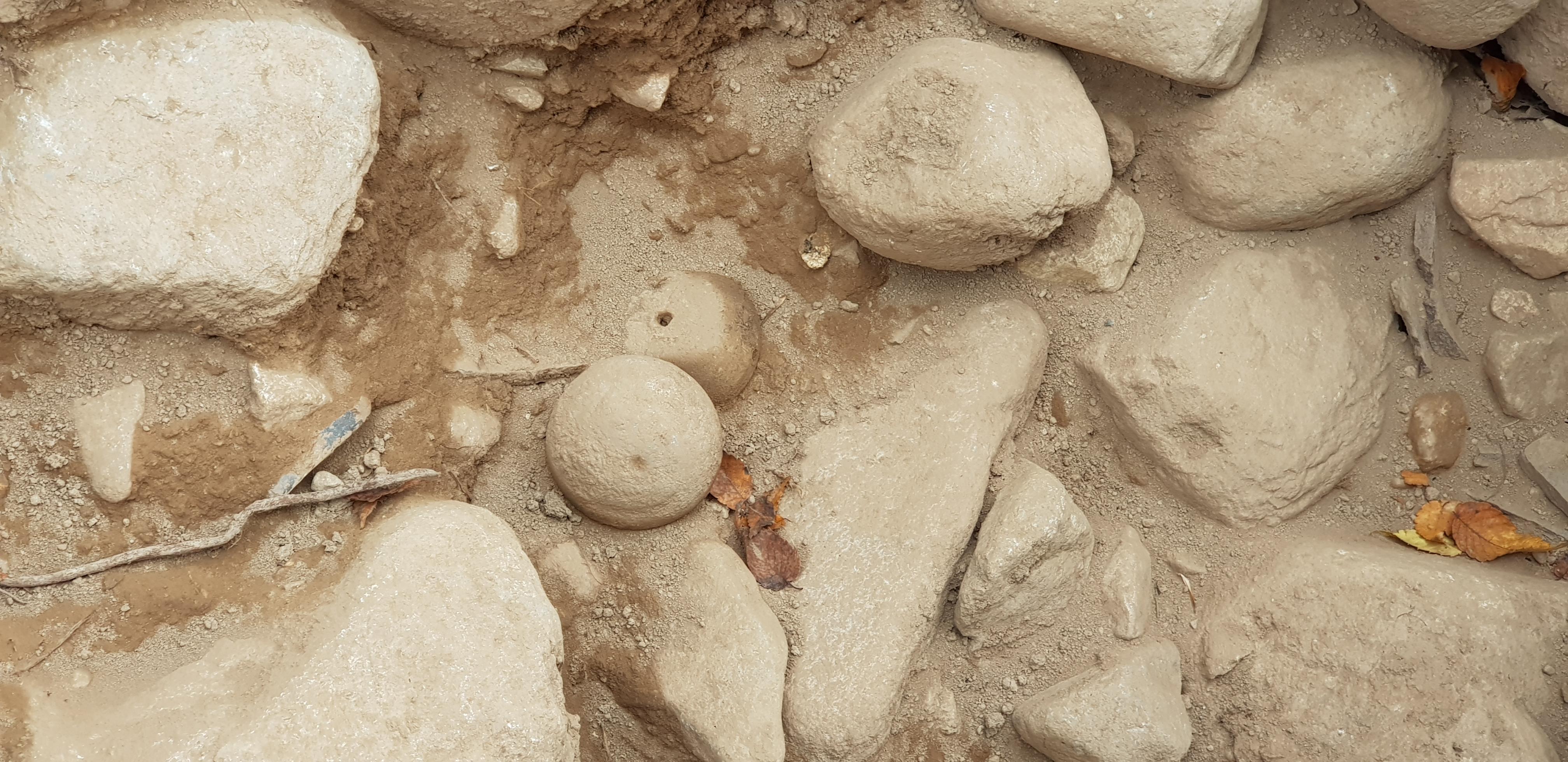 한편, 호석 바깥으로는 약 40cm 두께의 정지층이 확인되는데, 흙을 다진 뒤 잔자갈을 깔았으며, 그 주변에서 30여 개체에 달하는 제사용 토기들이 수습되었다. 제사용 토기 안팎에서는 동물뼈(말, 소, 기타 포유류 등)를 비롯해 각종 패각류(굴, 고동, 조개류)와 뚜껑접시(개배 蓋杯), 토제방울, 유리구슬, 쇠스랑 등이 확인되었으며, 특히 말모양 토기(마형토기 馬形土器) 1점이 출토되어 주목된다.